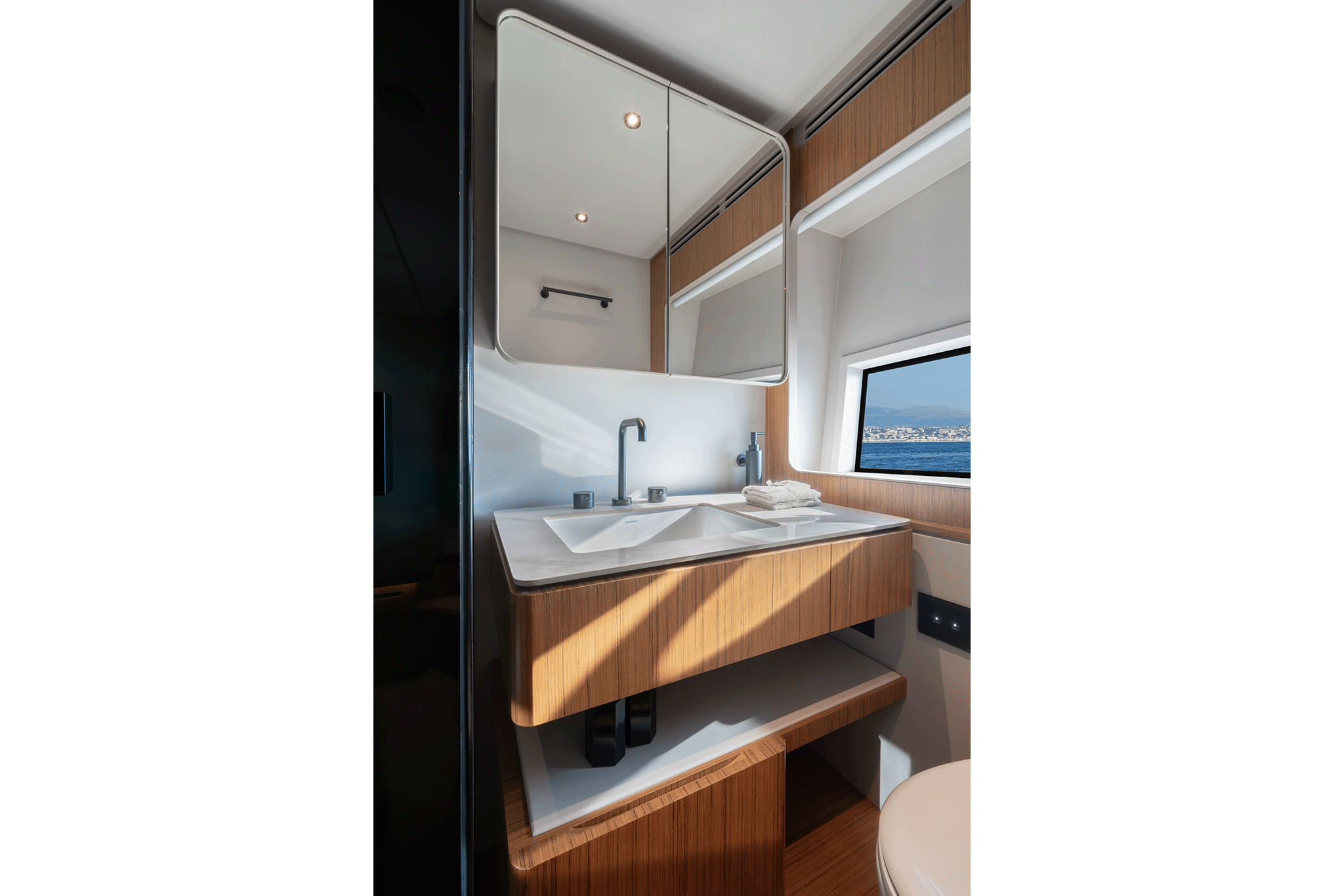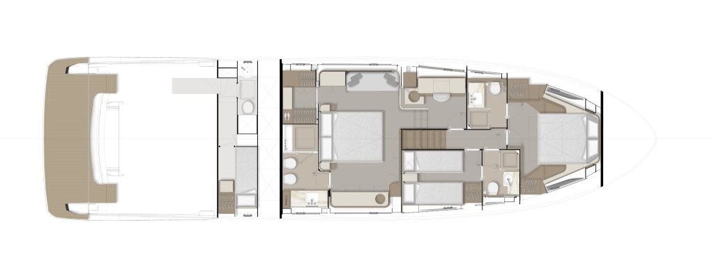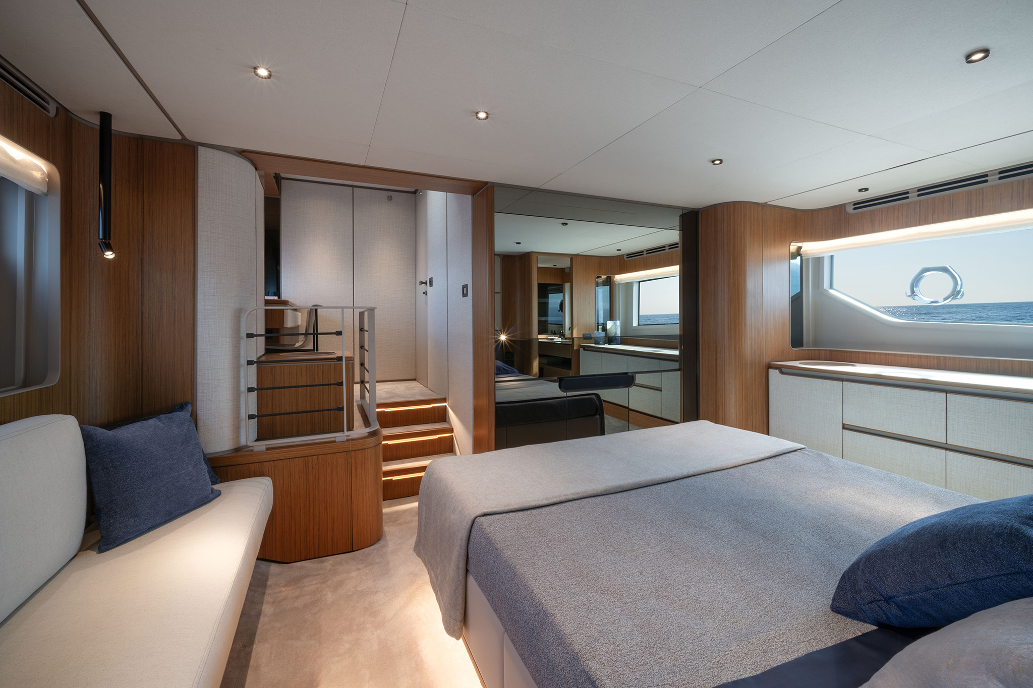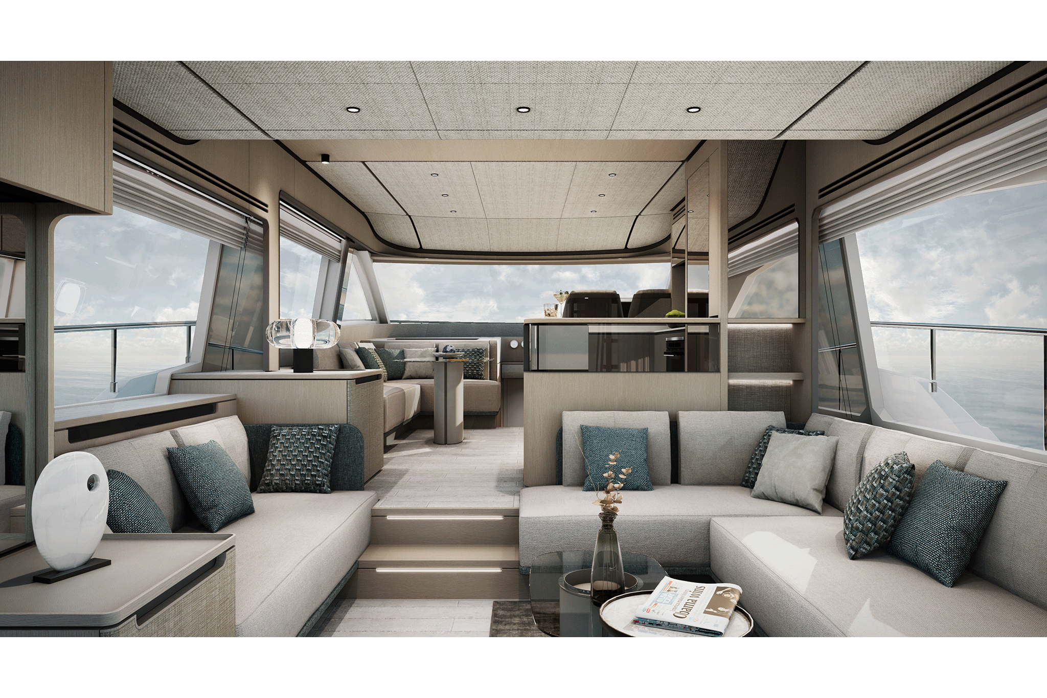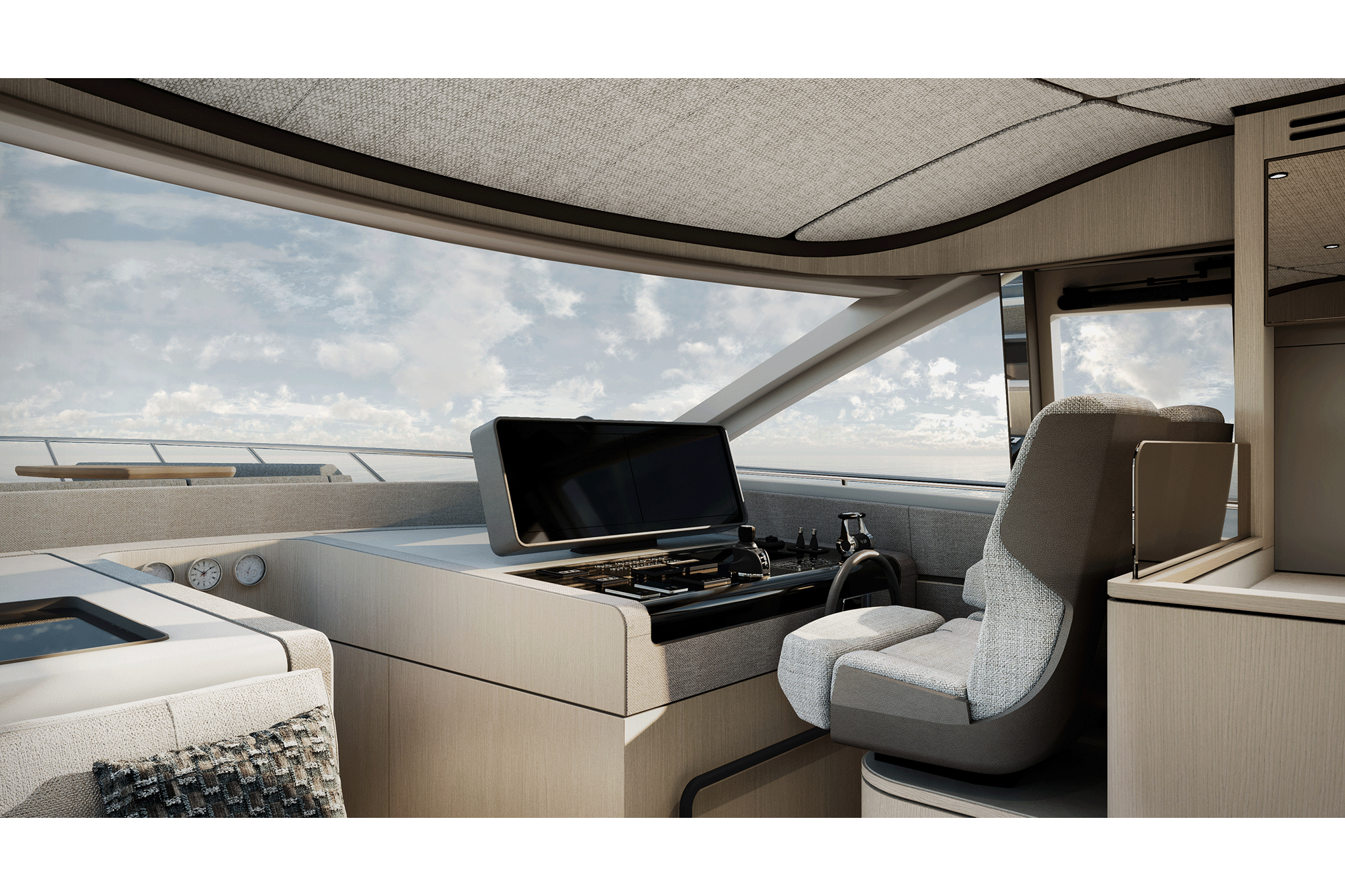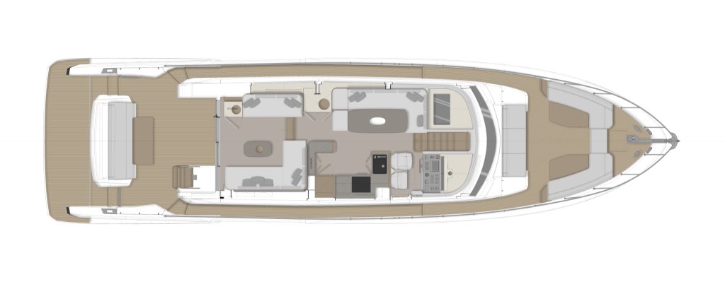 The new flybridge celebrates the brand’s continuous evolution in pursuit of the perfect blend of comfort, liveability and refined beauty. This major restyling introduces exclusive features such as the elegant new exterior styling, the redesigned hard top, and interiors by Ideaeitalia.