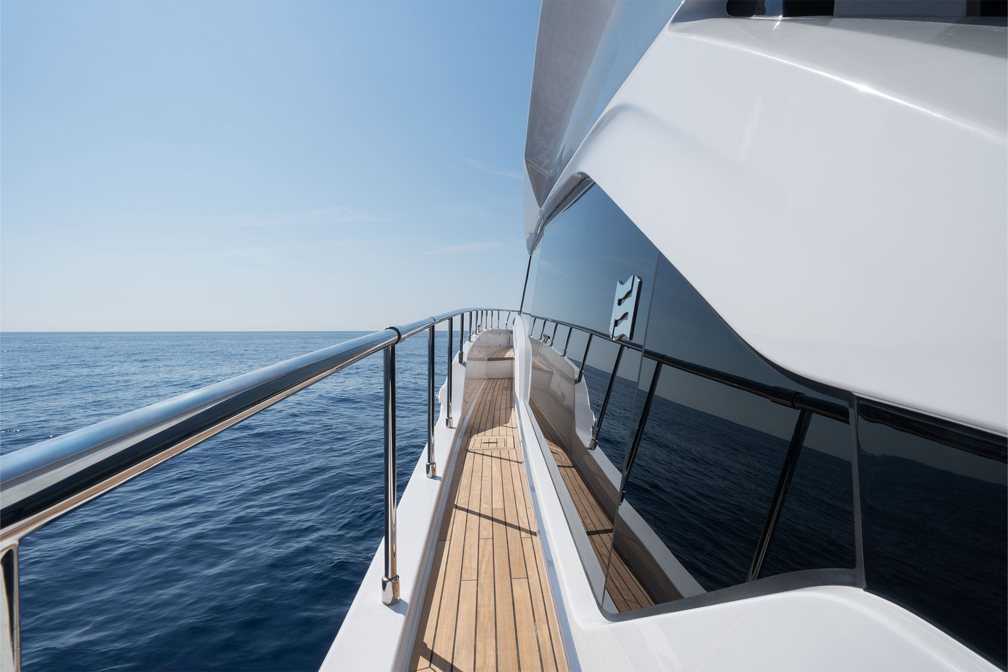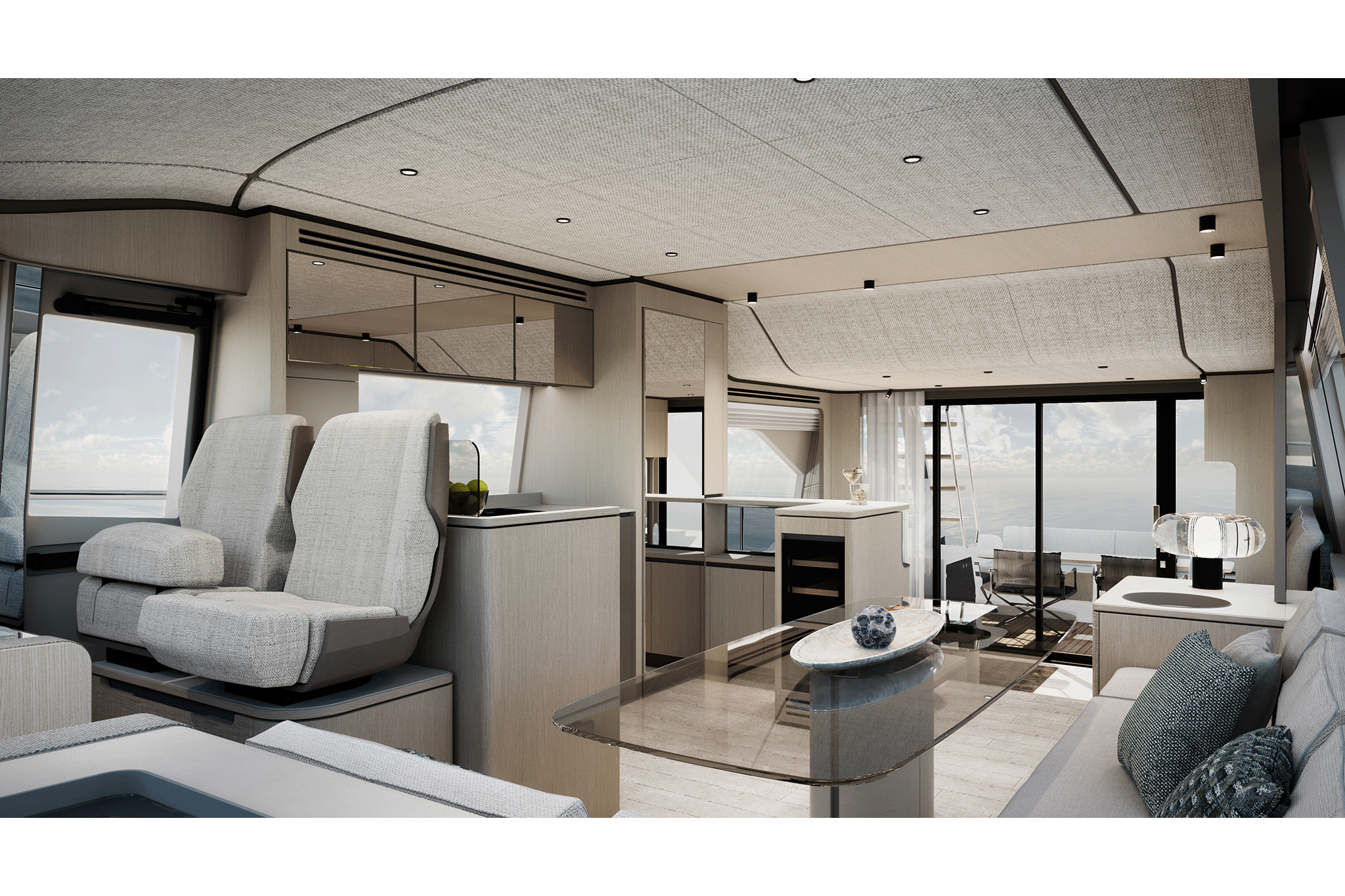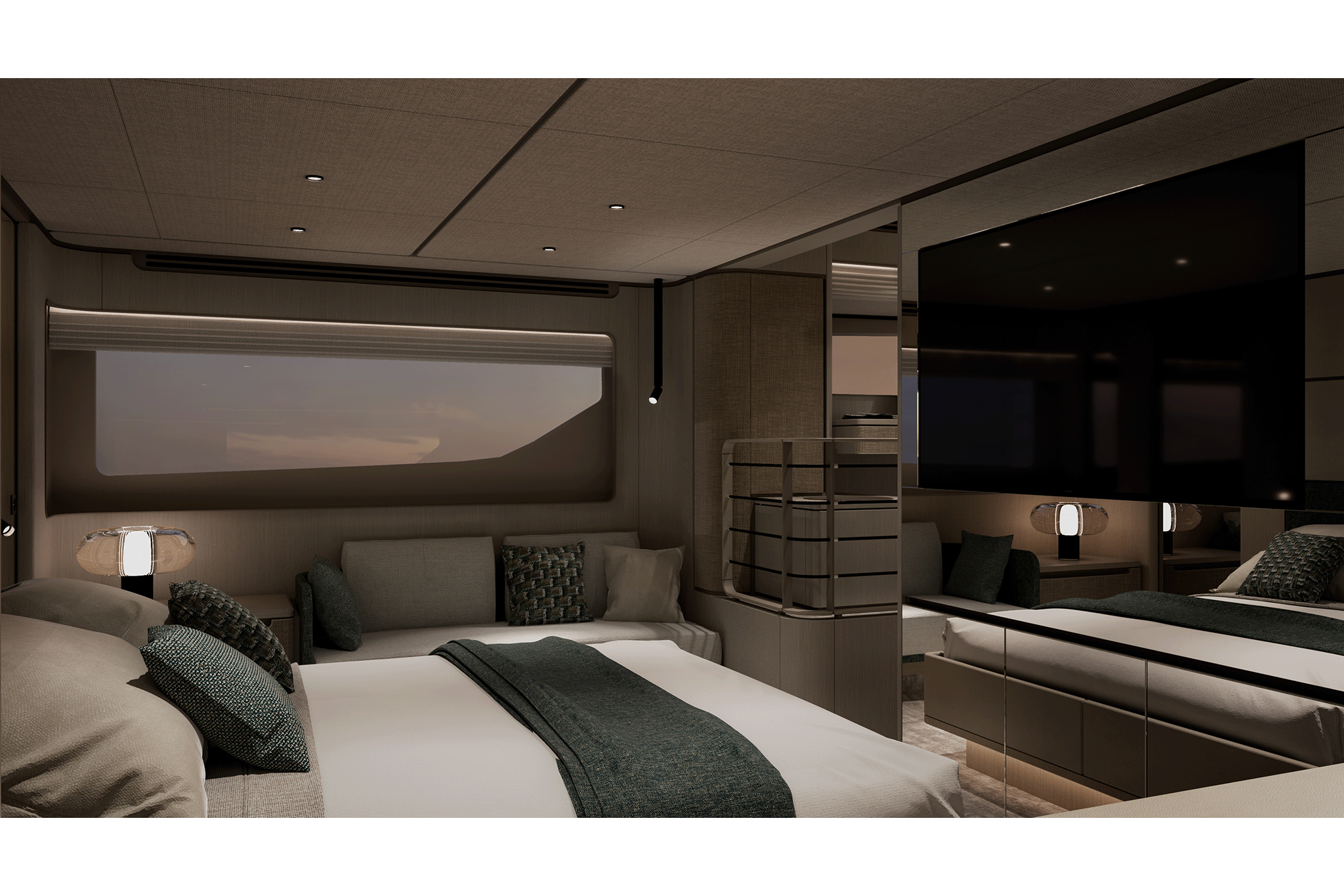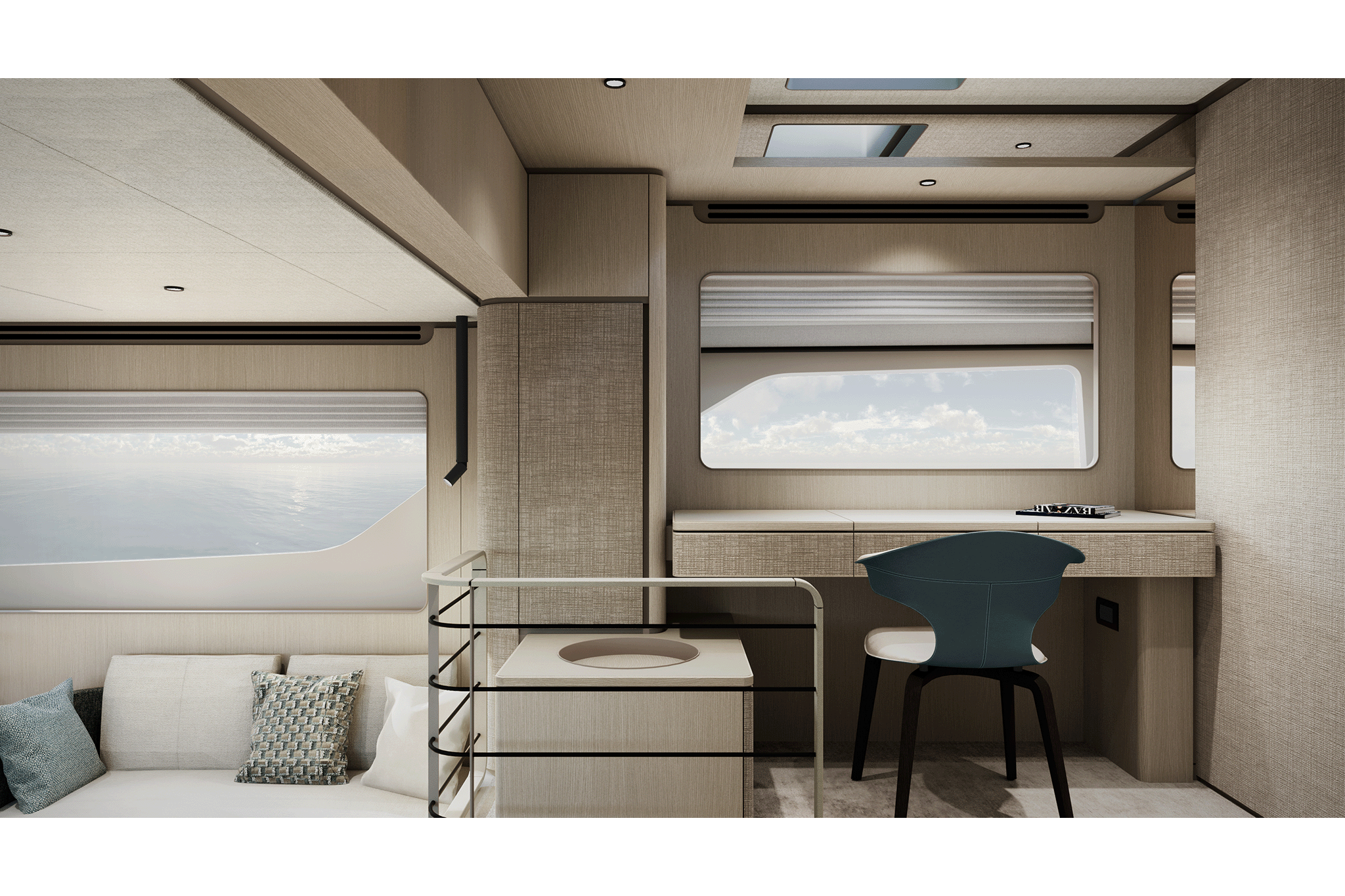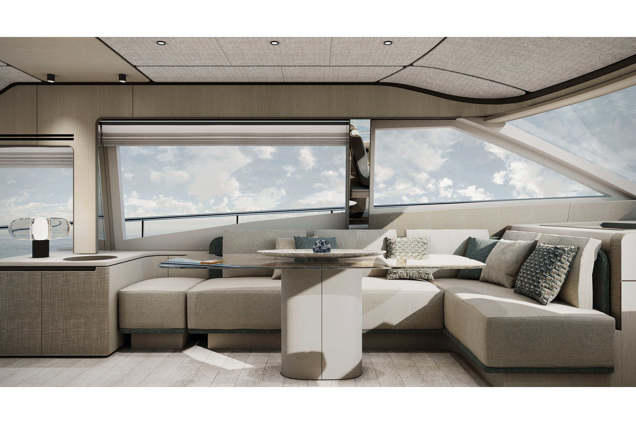 Sustainability criteria, more covered exterior surface area and continuity between interiors and exteriors are the key features of Ferretti Yachts INFYNITO 80.