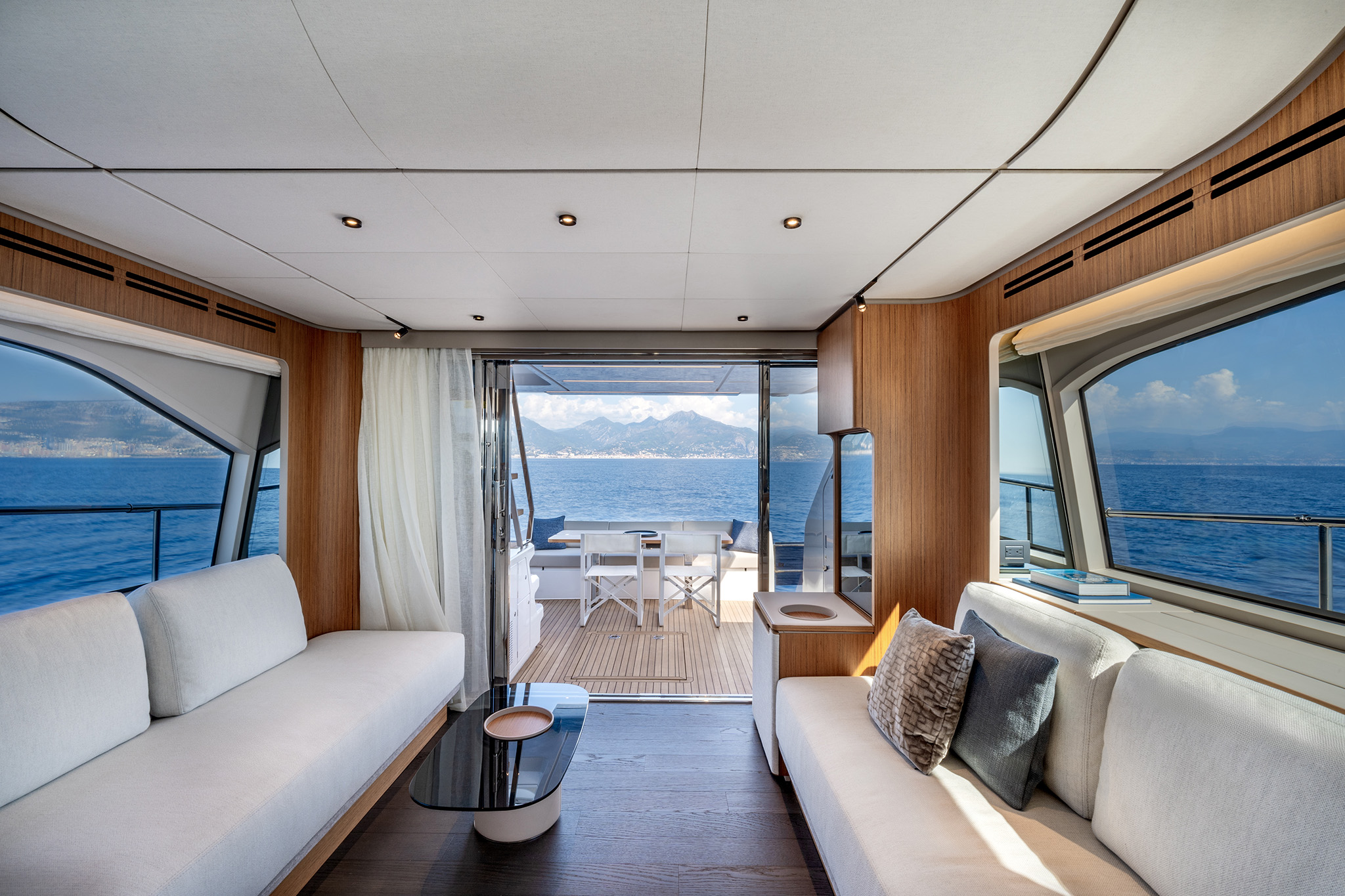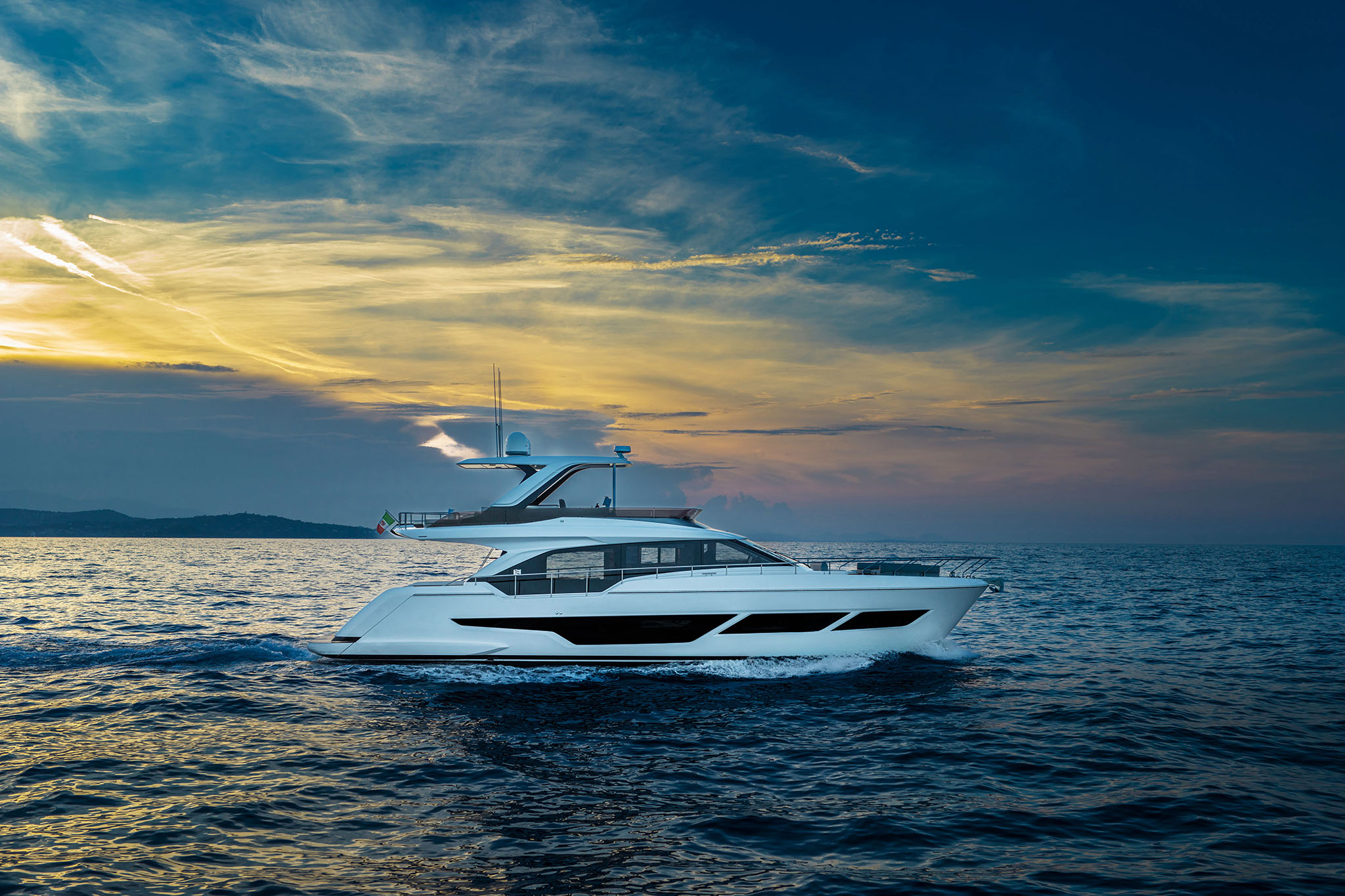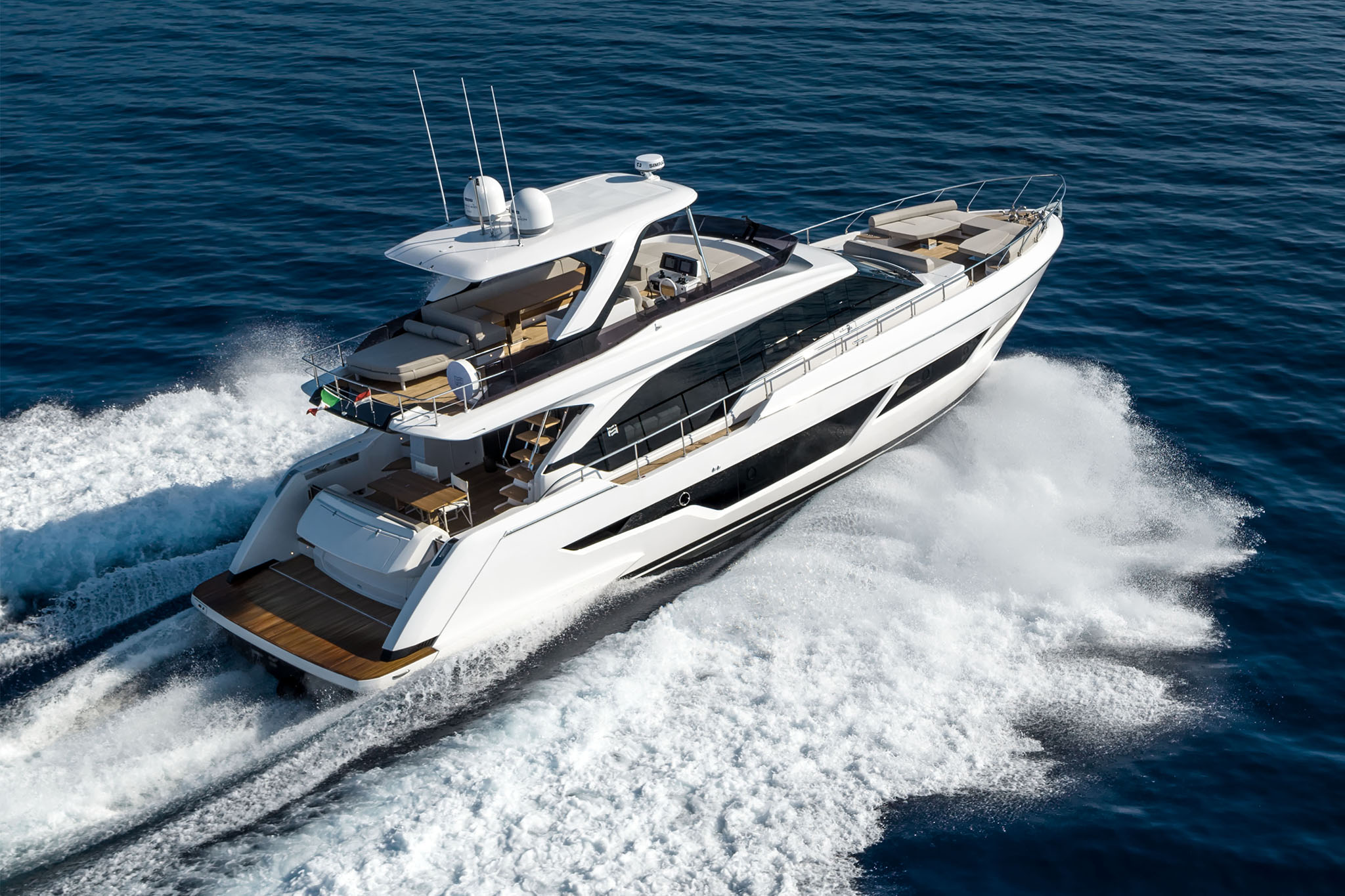 An emblem of Modern Luxury, the new Ferretti Yachts 580 has ideal features for an intimate and comfortable experience of the sea in perfect Ferretti Yachts style.