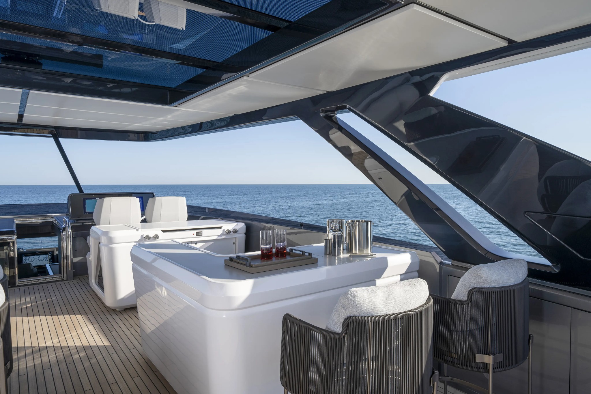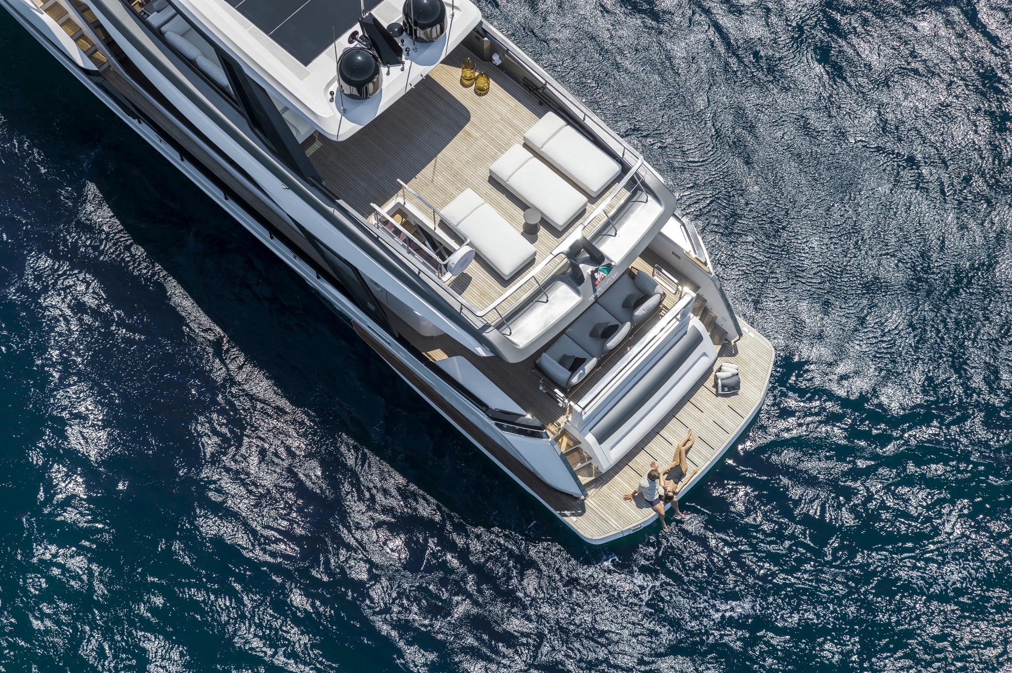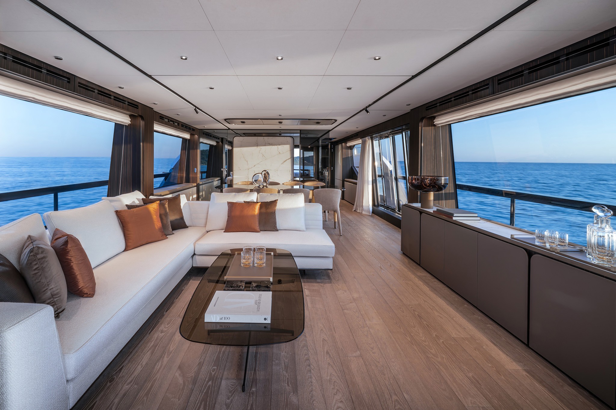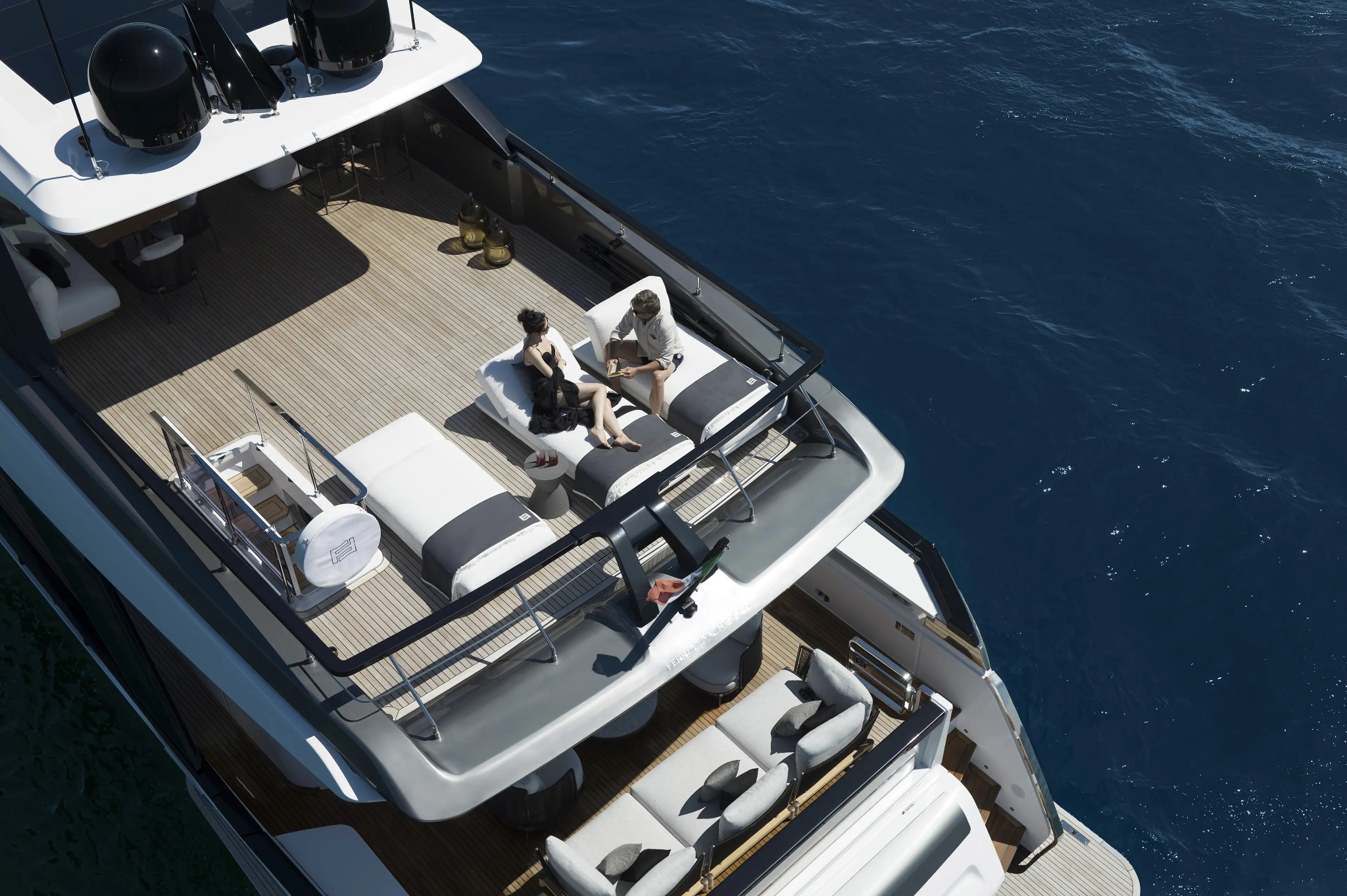 Sustainability criteria, more covered exterior surface area and continuity between interiors and exteriors are the key features of Ferretti Yachts INFYNITO 80.