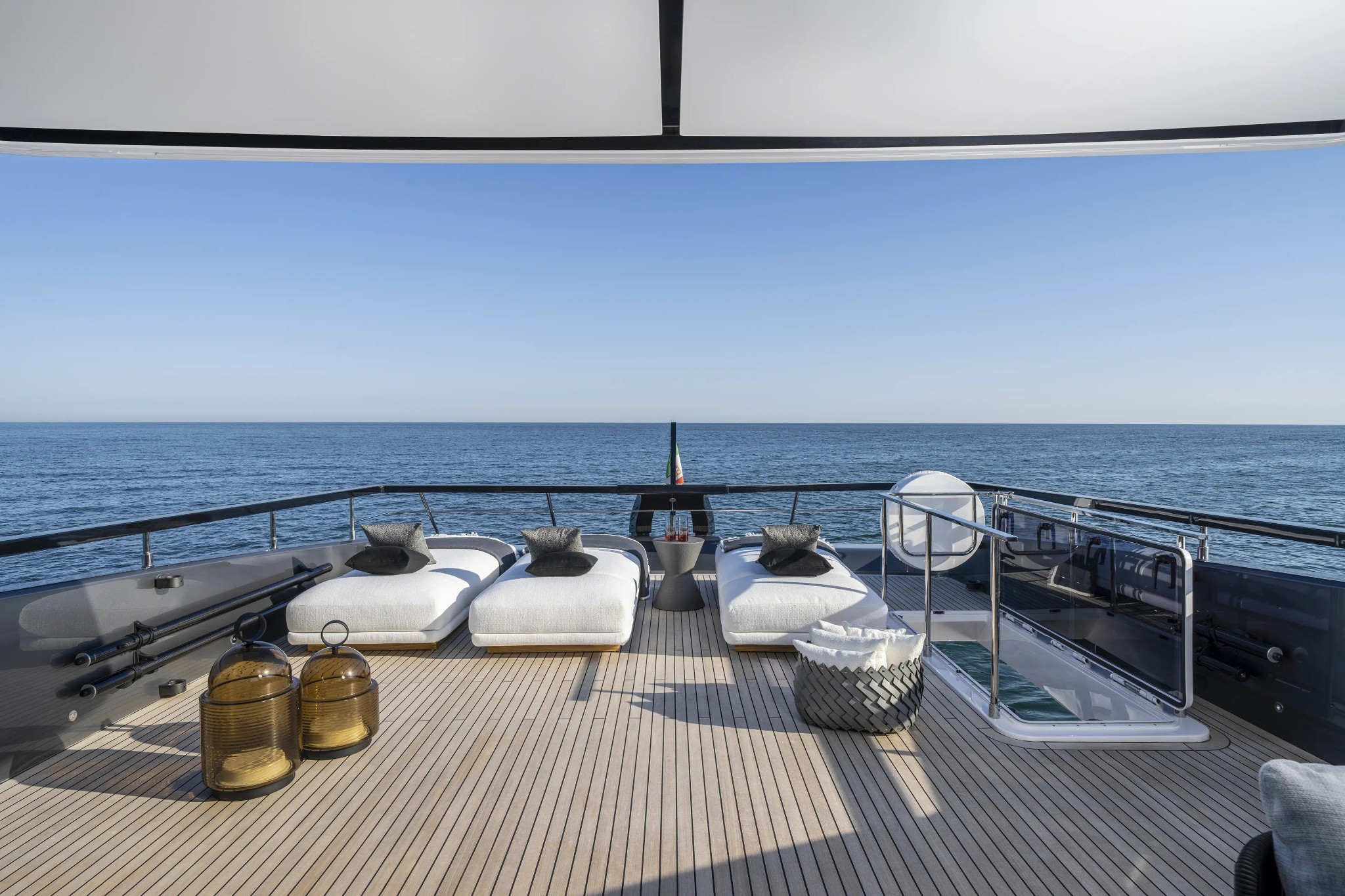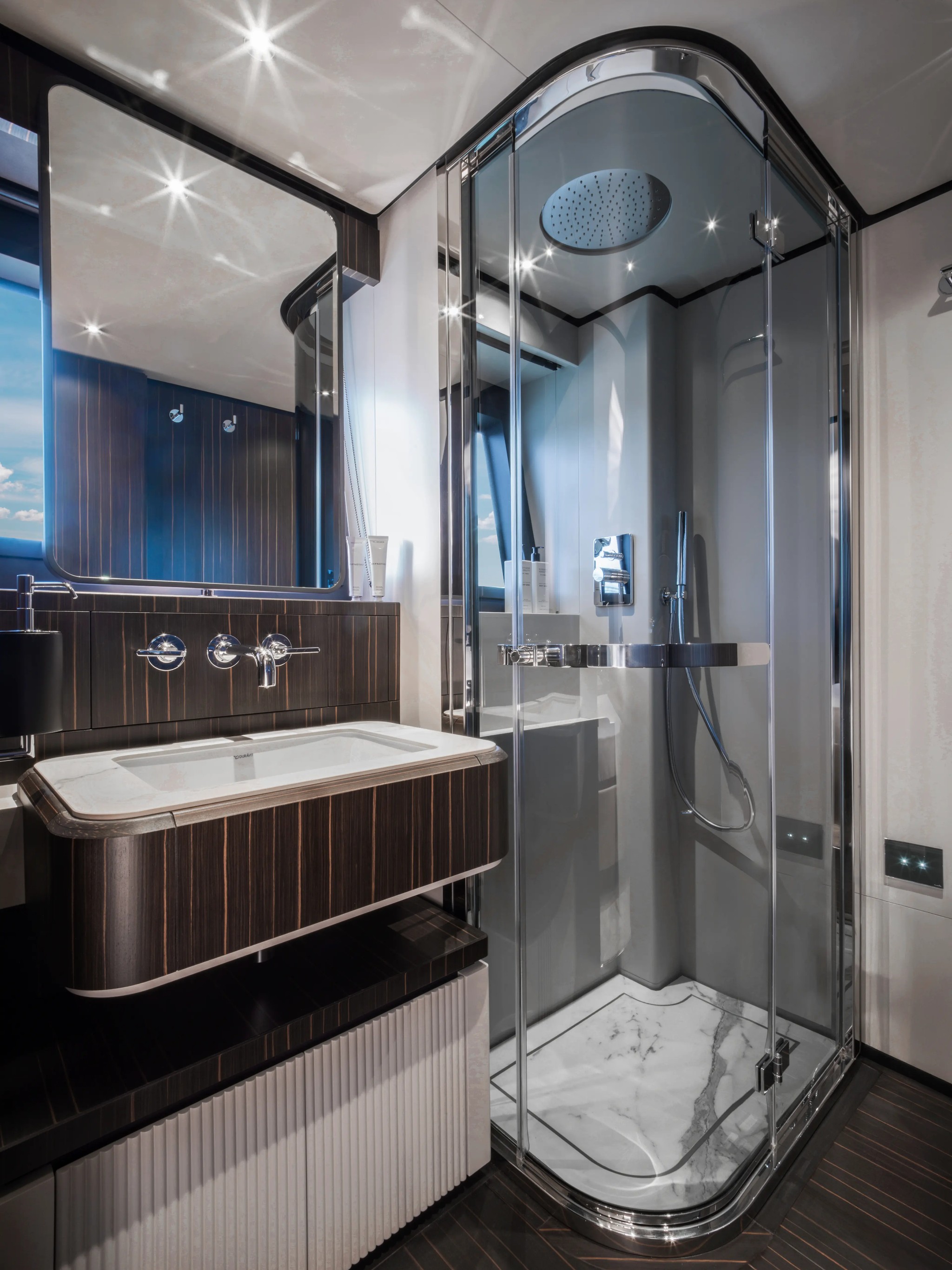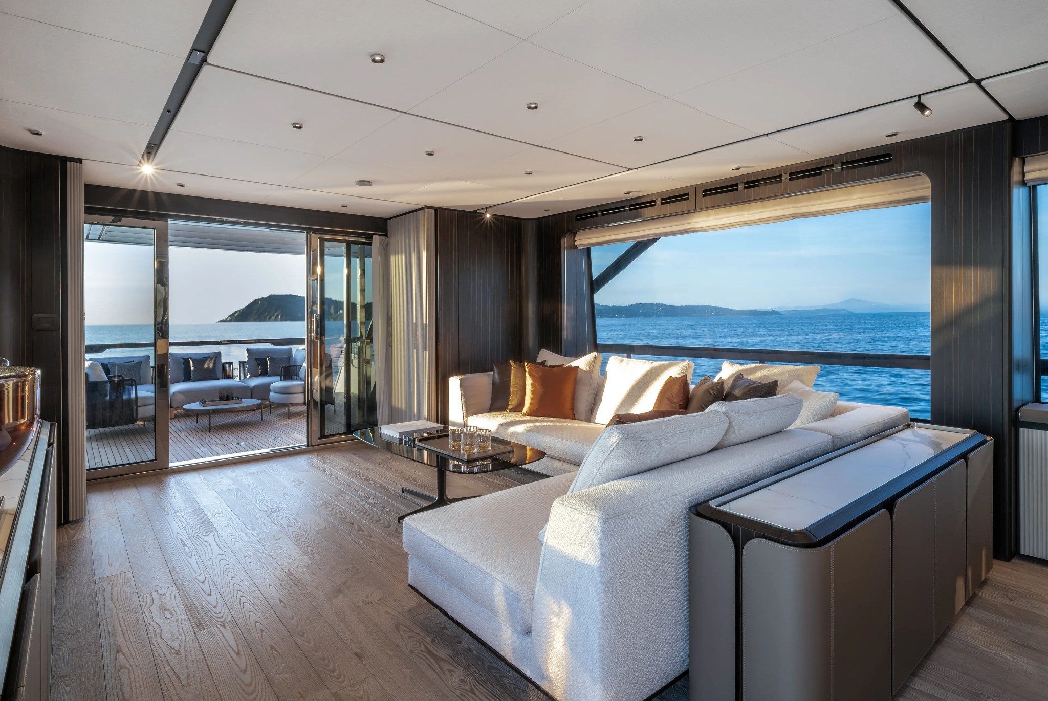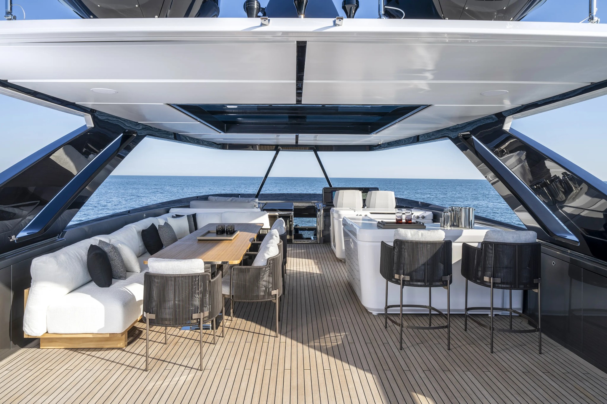 Sustainability criteria, more covered exterior surface area and continuity between interiors and exteriors are the key features of Ferretti Yachts INFYNITO 80.