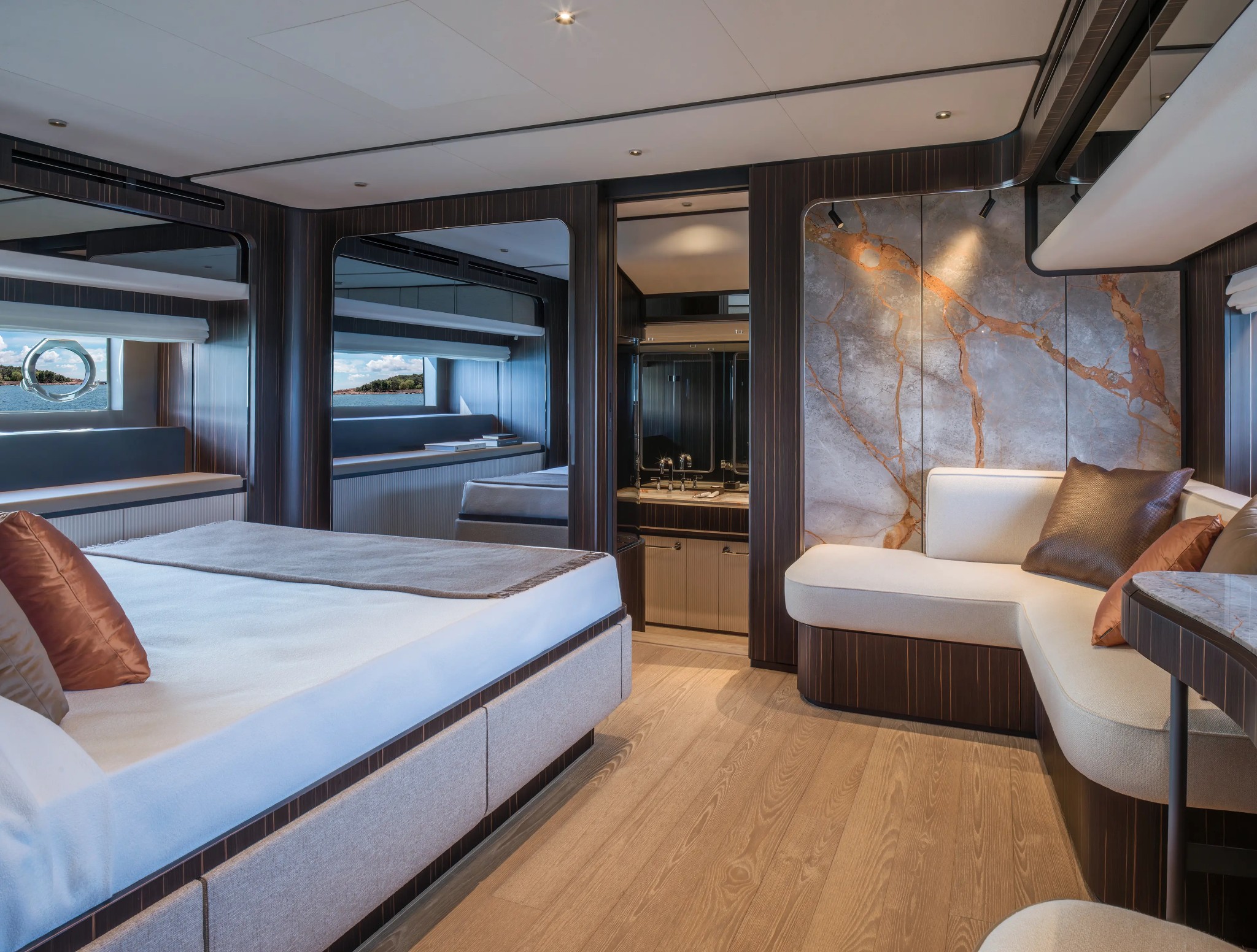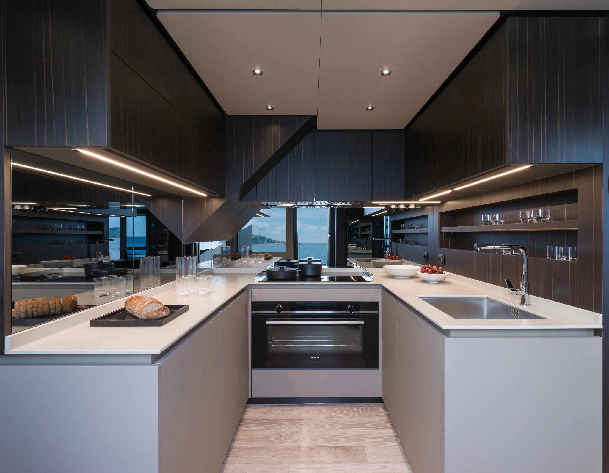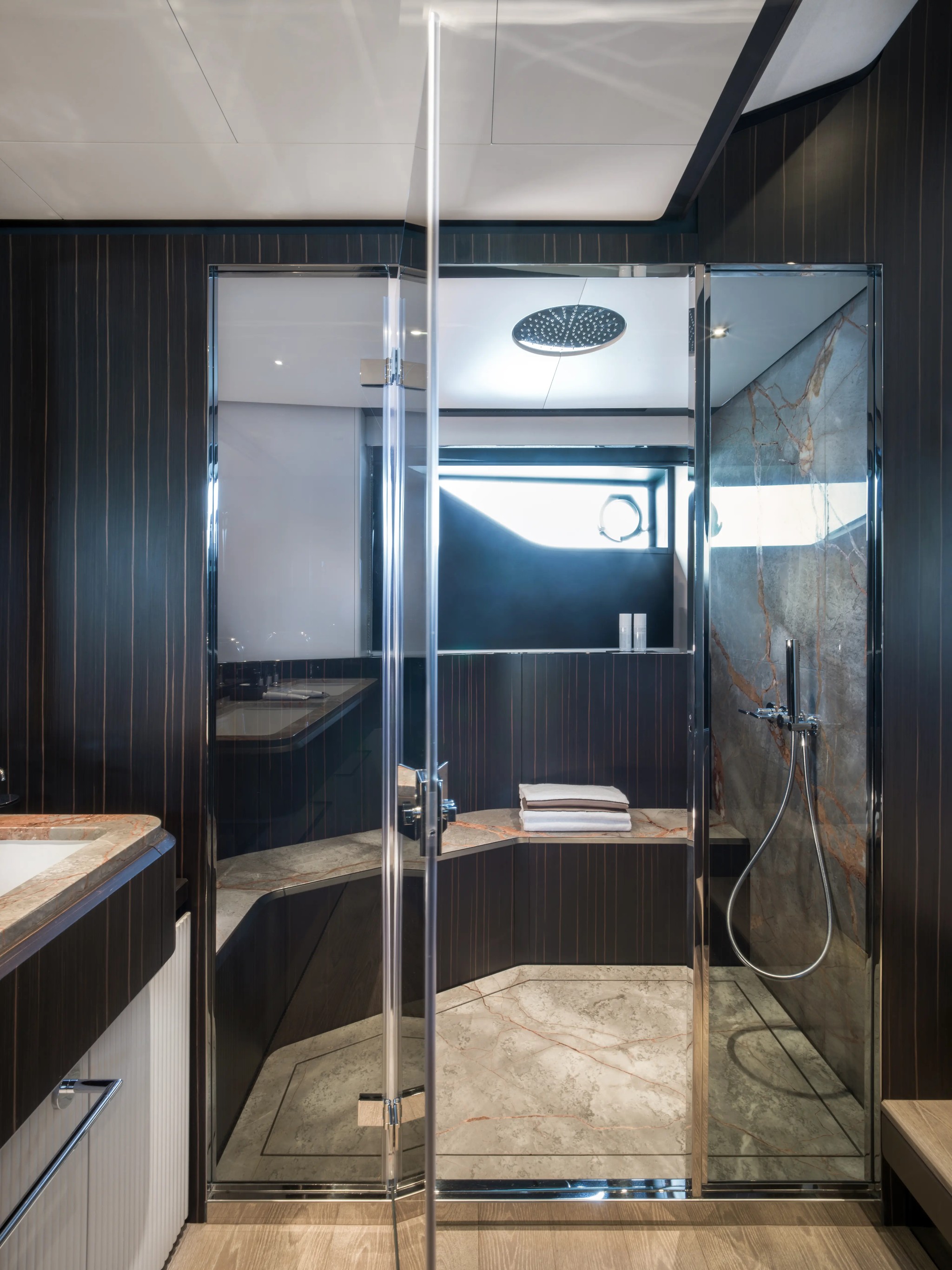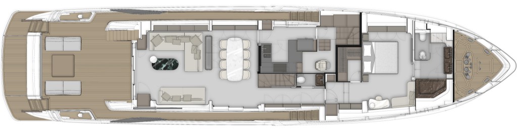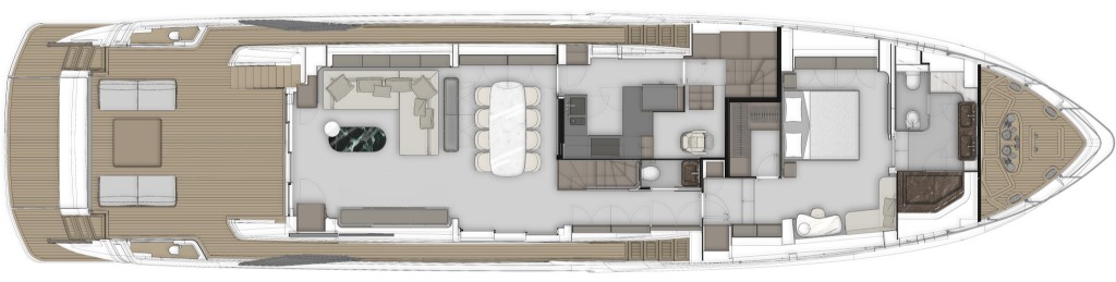Sustainability criteria, more covered exterior surface area and continuity between interiors and exteriors are the key features of Ferretti Yachts INFYNITO 80.