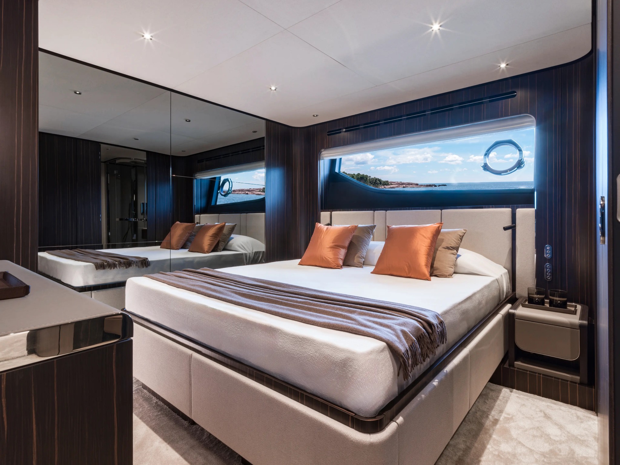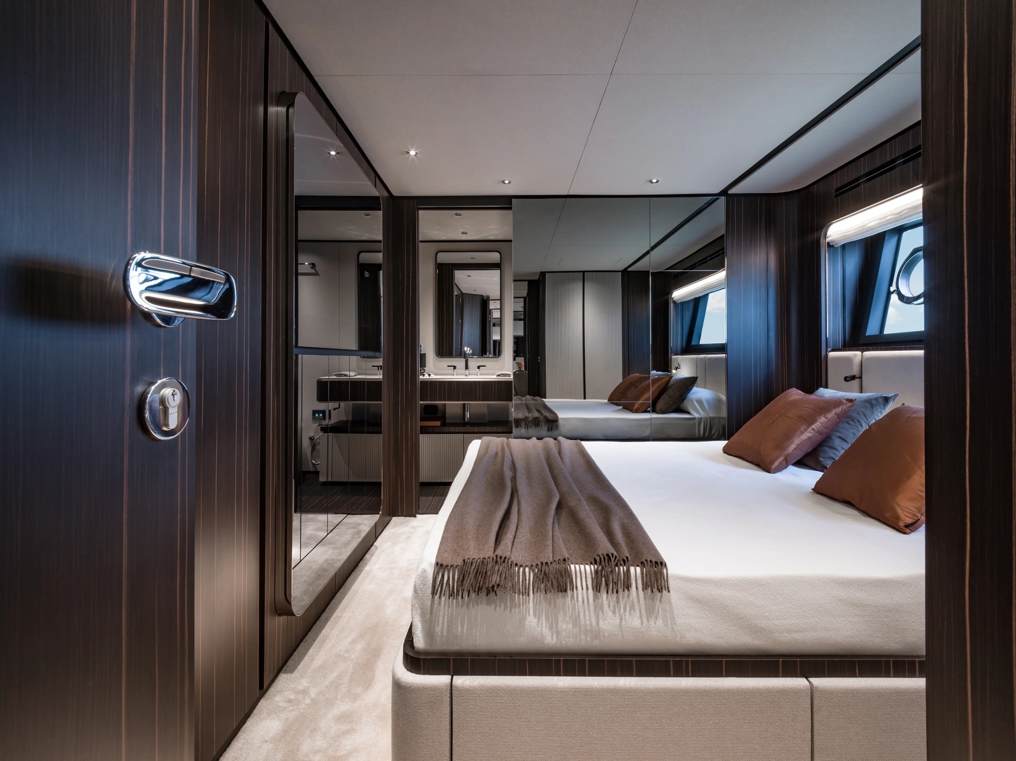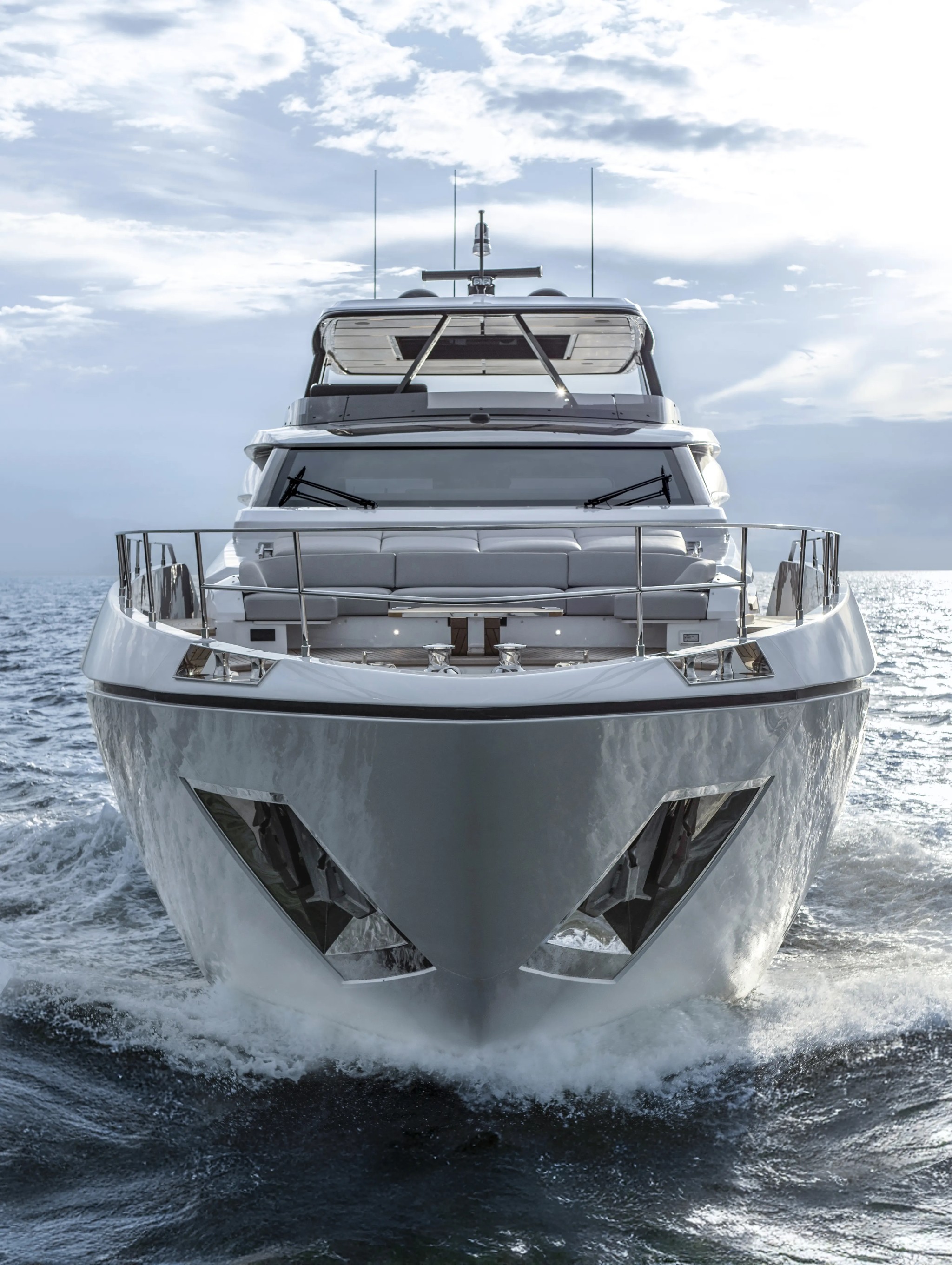 No dream is too big: with a length of 100 feet, the breath taking new Ferretti Yachts flagship takes the company into uncharted territory. Majestic, versatile and suitable for all markets, Ferretti Yachts 1000 has reshaped spaces and changed the whole approach to life on board. It features unprecedented design solutions and a choice of two different moods for the interiors. Owners and their guests can enjoy complete privacy and make the most of the exterior thanks to an extremely innovative and practical aft beach area and a spacious flybridge that is connected directly to the forward section.