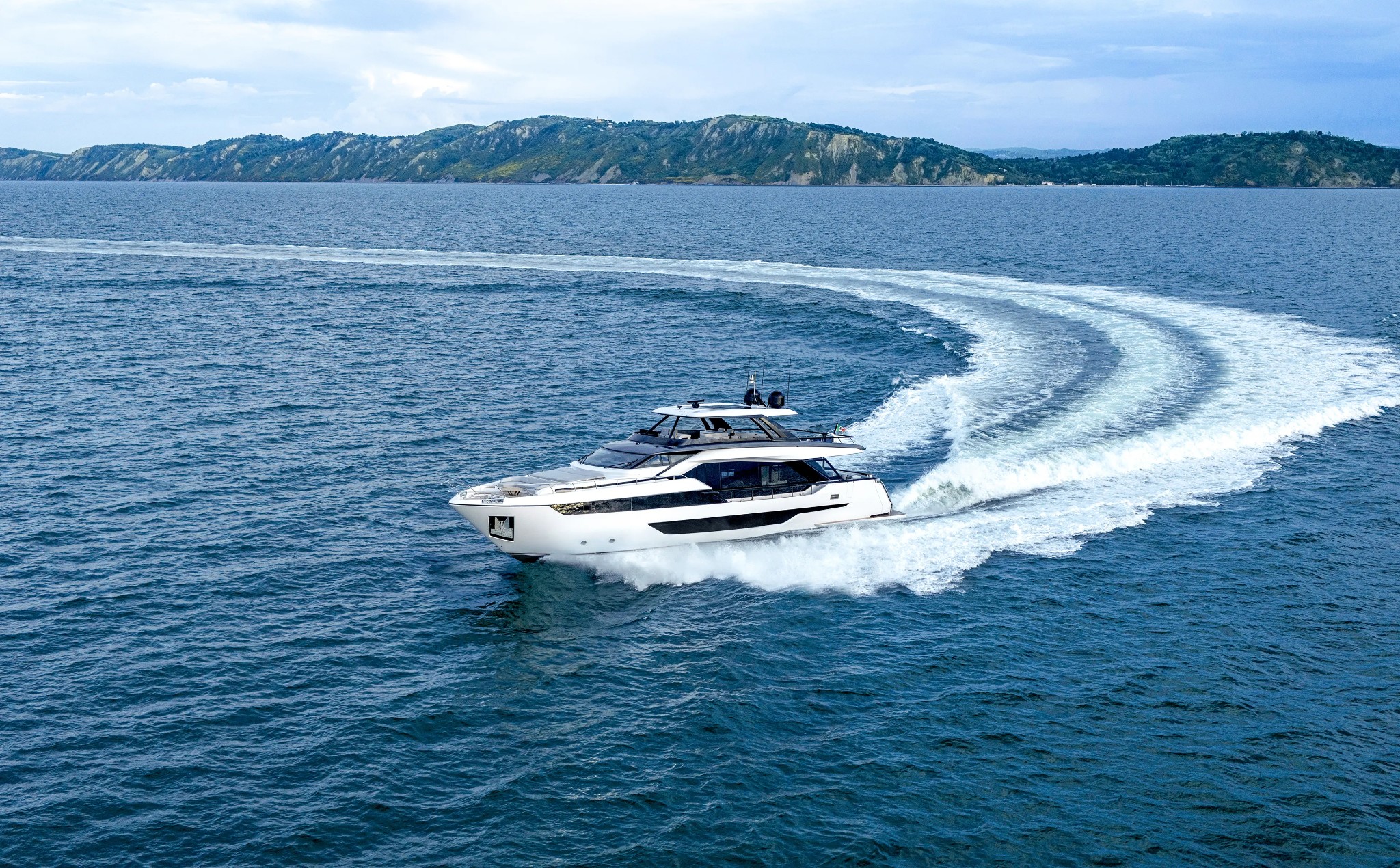 An emblem of Modern Luxury, the new Ferretti Yachts 580 has ideal features for an intimate and comfortable experience of the sea in perfect Ferretti Yachts style.