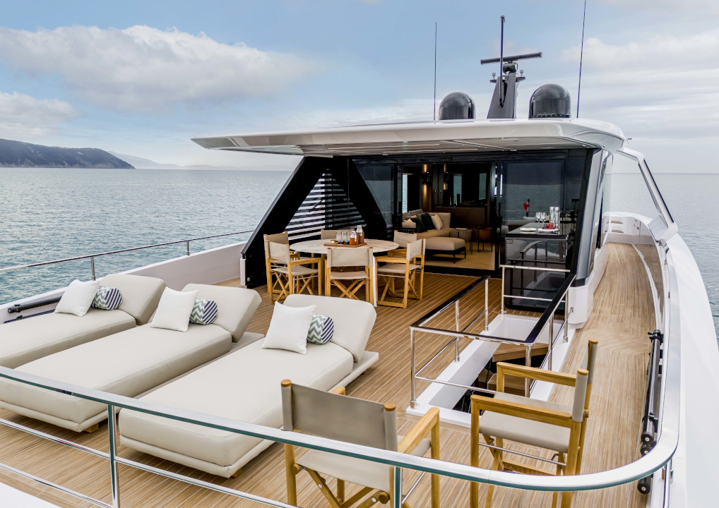 Sustainability criteria, more covered exterior surface area and continuity between interiors and exteriors are the key features of Ferretti Yachts INFYNITO 80.