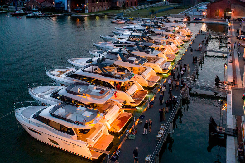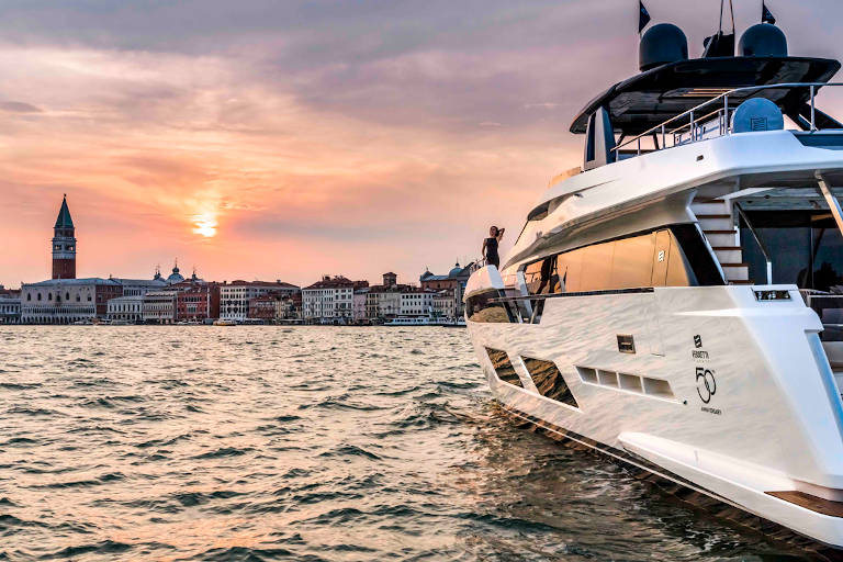 这份特殊联系中最令人记忆深刻的一次是2018年6月在威尼斯举行的船厂50周年庆典。在这座“最尊贵城邦”(La Serenissima:威尼斯的古称)的灿烂背景下,600多名船东和贵宾亲历了这次独特体验,乐在其中。置身总督宫的大议会厅,来宾们在华丽的艺术氛围中享用美食。期间,整支法拉帝游艇舰队从圣马可广场前游弋而过,大名鼎鼎的意大利空军三色箭飞行表演队在国歌声中掠过上空。之后,贵宾们来到威尼斯军械库码头,在法拉帝舰队的陪伴下度过了一个专享的周末派对。这份经历满载着法拉帝游艇的完美格调,深藏于每一位嘉宾的美好记忆之中。