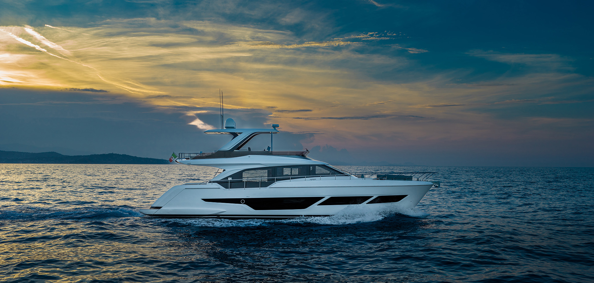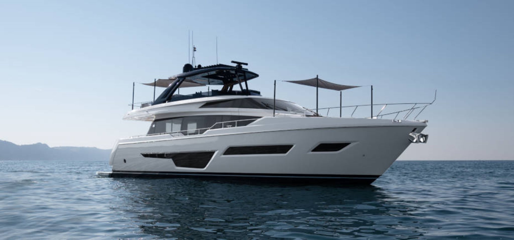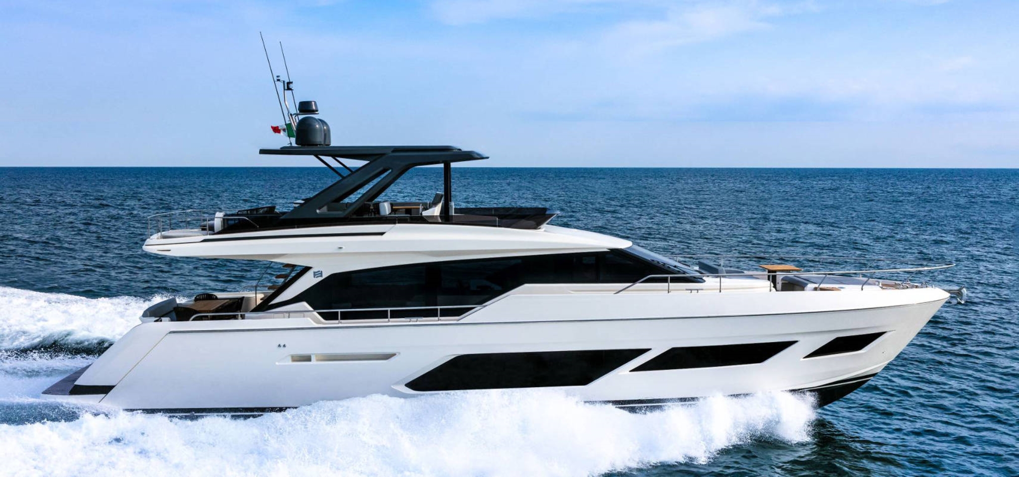 An emblem of Modern Luxury, the new Ferretti Yachts 580 has ideal features for an intimate and comfortable experience of the sea in perfect Ferretti Yachts style.