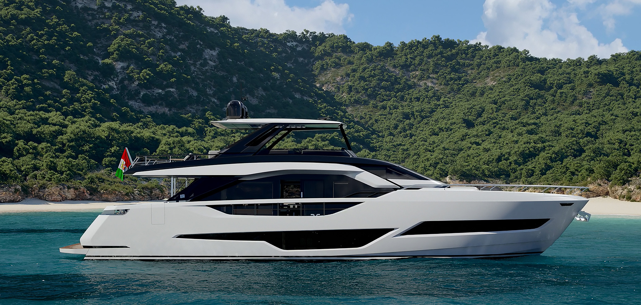 Sustainability criteria, more covered exterior surface area and continuity between interiors and exteriors are the key features of Ferretti Yachts INFYNITO 80.